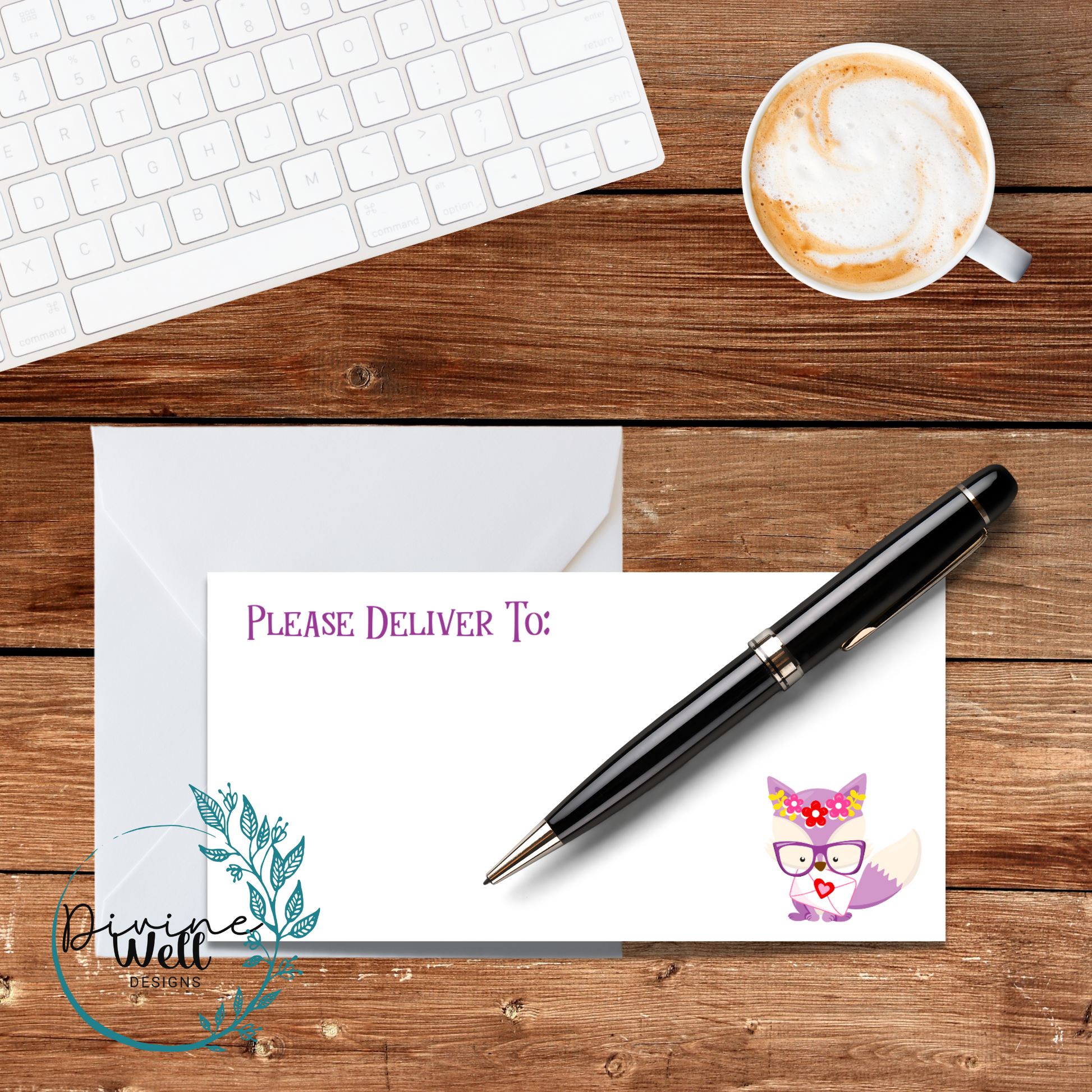 Please Deliver To (PDT) labels are used on the front of your envelope to put the recipient's address on. In the picture, this has been placed on the envelope. Please note that no envelopes come with this order but has been used for effect only.