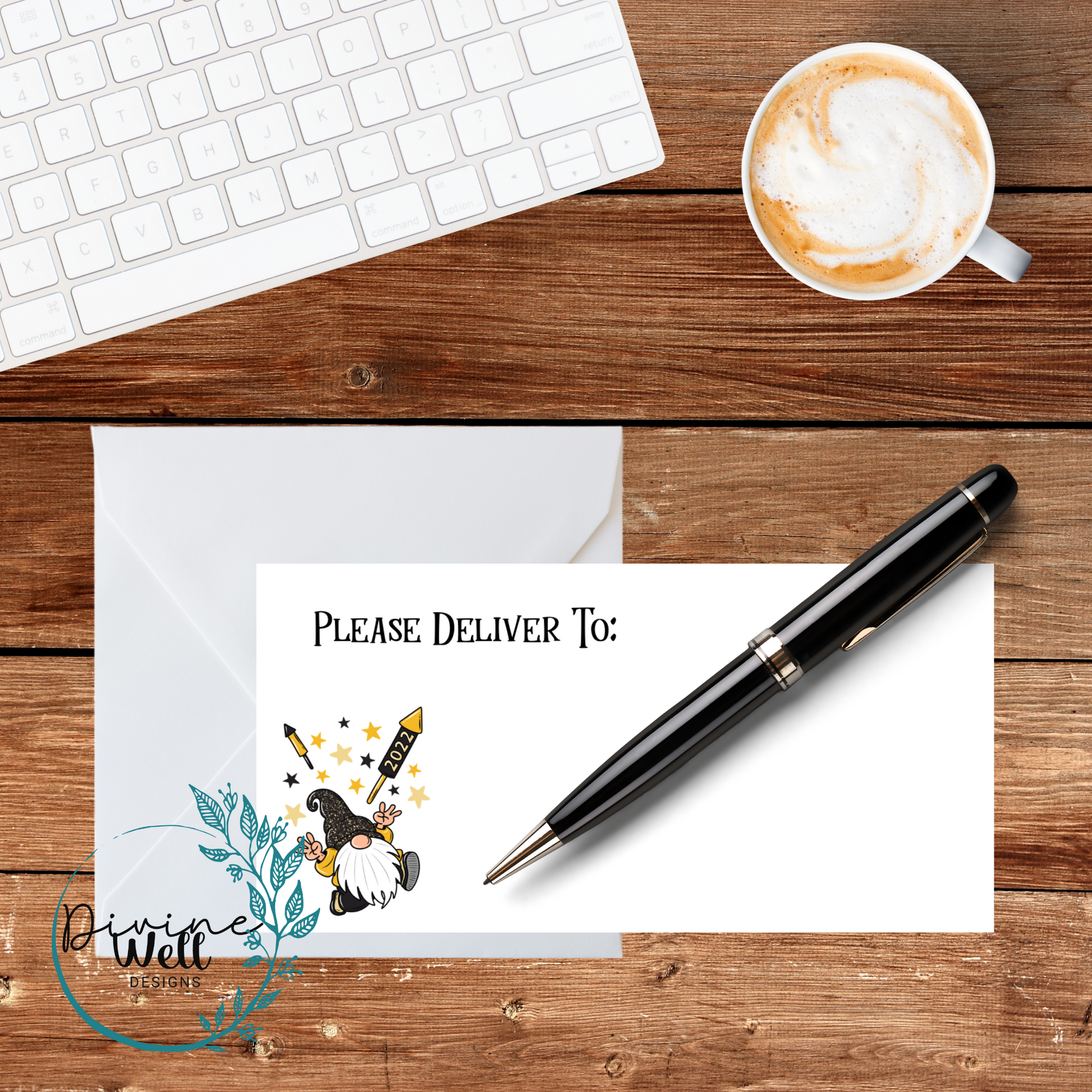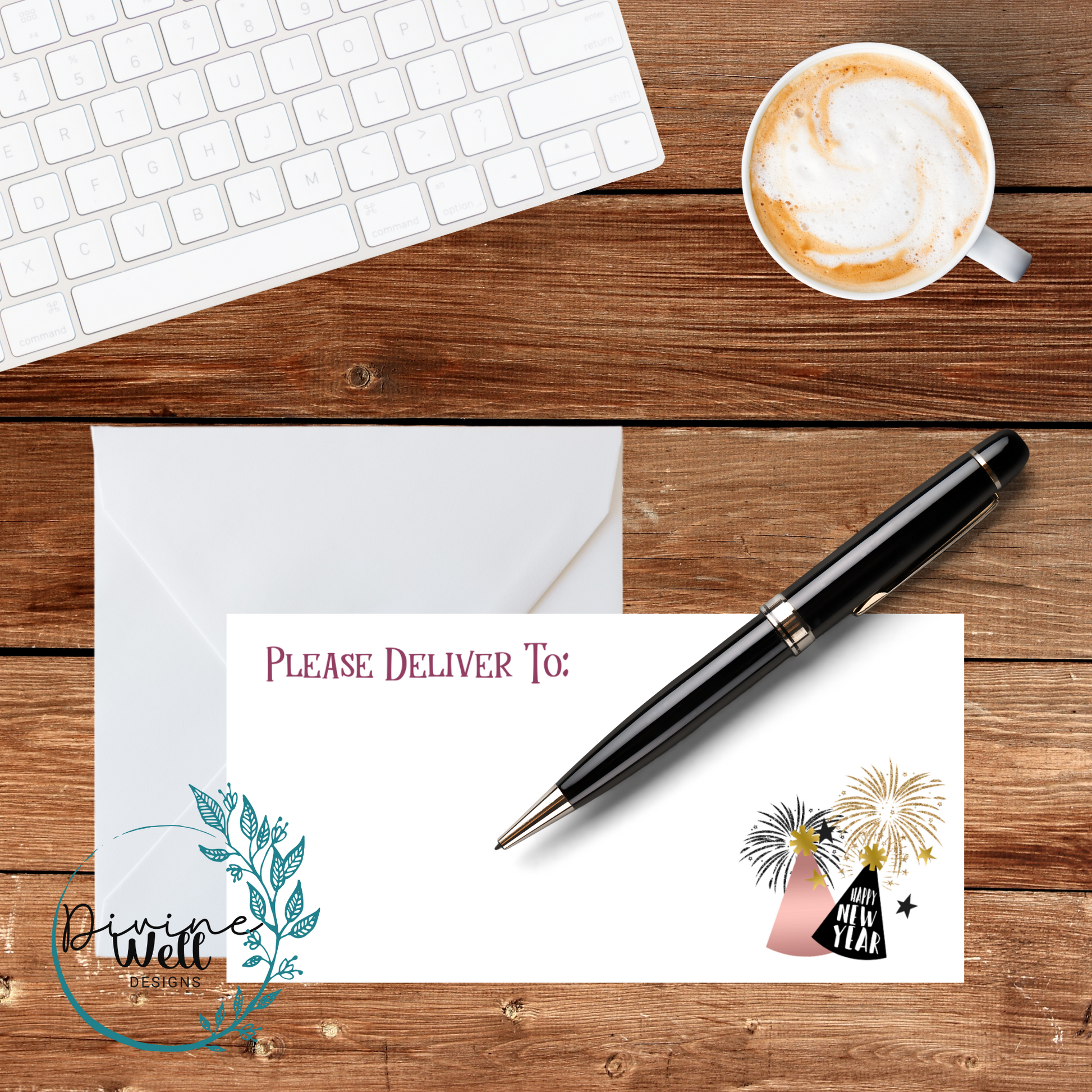 Please Deliver To (PDT) labels are used on the front of your envelope to put the recipient's address on. In the picture, this has been placed on the envelope. Please note that no envelopes come with this order but has been used for effect only.