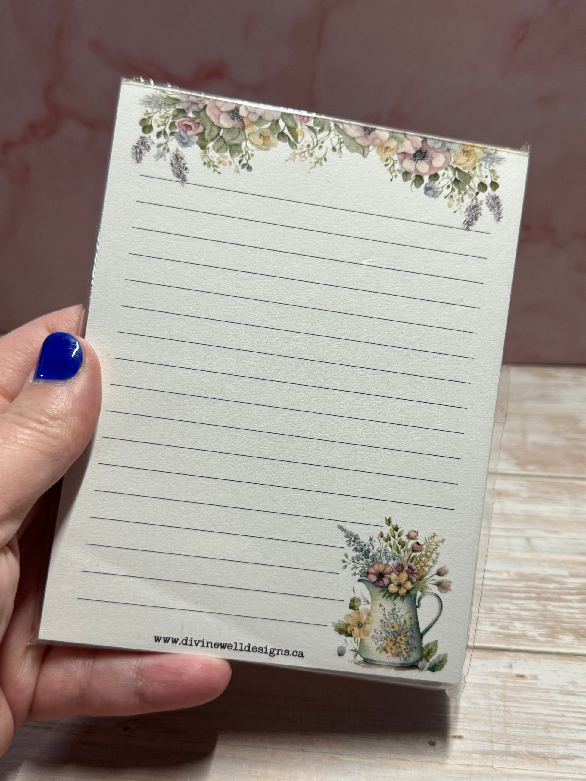 This magnetic refrigerator notepad, features a beautiful pastel floral design that adds a touch of serenity to your kitchen. This notepad is perfect for jotting down grocery lists, reminders, and notes, and its magnetic backing keeps it securely in place on your fridge. Stay organized and add a breath of fresh air to your kitchen with our floral magnetic notepad.